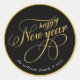 Happy New Year Gold & Black Typography Classic Round Sticker