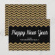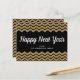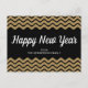Happy New Year Gold Glitter Black Chevron Stripes Postcard