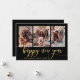 Happy New Year Gold Script Black 3 Photo Collage Holiday Card