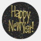 Happy New Year - Gold Text on Black Confetti Classic Round Sticker