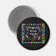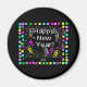 This is one of my New Year's drawing that I call, "Happy New Year Greetings," I have added colourful party streamers and confetti and colourful polka dots as the background to my drawing so that my New Year's drawing is colourful and unique. You can now order my drawing added onto this round magnet, you can order this round magnet in Small 1 1/4 inch, Standard 2 1/4 inch and Large 3 inch. This round magnet makes a beautiful decor for your refrigerator to celebrate a New Year.