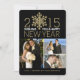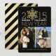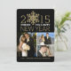 Happy New Year Holiday Photo Flat Card -- Elegant sparkling bright gold glitter-look snowflake on black background. Fully adjustable for up to 4 photos - just add your favourite family, wedding, or kids pictures and customise the text. Simple sophisticated modern minimalist typography is perfect for hip, trendy newlyweds and young adults. Non-sectarian, non-religious Christmas greeting cards. Classic contemporary way to send happy winter holiday wishes to friends and colleagues in cheerful spirit of the season. Coordinating matching postage stamps, mugs, buttons, stickers, trendy gifts and party favours available in store.