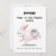 This Year of the Rabbit card reads "Happy New Year!" in Chinese and has a rabbit who has the Chinese word meaning "rabbit" written on its rump and the previous years of this zodiac sign written underneath for reference. Write your personalised message or header on the back of this card to send new year greetings for the lunar New Year which is on January 22, 2023.