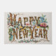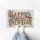 Happy New Year in Tree Trunks, Acorns and Flowers Doormat