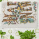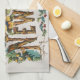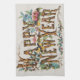 Happy New Year in Tree Trunks, Acorns and Flowers Tea Towel