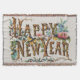 Happy New Year in Tree Trunks, Acorns and Flowers Throw Blanket