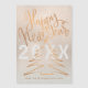 Easy to personalise New Year holiday magnetic card featuring a copper gold metallic glam typography script, white diamonds and a stylised Christmas tree with a star over a pale rose gold shiny faux foil background. ++++++++++++++ Suitable for family or business corporate greetings. Just insert the year and your signature!