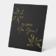 It is sturdy than I expected. Was worried about the material being flimsy but it is not. It is printed on some sort of plastic material. It should serve well at our wedding as long as wind isn’t too bad. Otherwise we will put some paper weights behind it and should be fine.