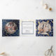 Happy New Year Navy and Gold Family Photo Collage Tri-Fold Holiday Card