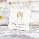 This design features a watercolor simple happy new year, eve day party champagne wine celebration festive invitation, trendy stylish gold bubbly toast, a watercolor champagne flute glasses glass, elegant calligraphy script text font, a whimsical typography style design, a modern Christmas holiday glitter, classy-vintage retro cute simplistic, family friends get together party, new years eve paper party cocktail napkins.