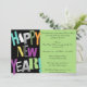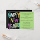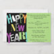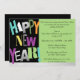 Beautiful Black & Lime Green Background new Years Eve Night Party Invitation featuring, "Happy New Year" appears at the side in multiple colour font. Customise with your personal greeting, family names and individual names.