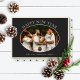 These simple 7" x 5" Christmas & holiday greeting cards feature a cameo shaped photo with the greeting, “Happy New Year” with taupe letters on a black background and a coordinating triangle pattern backer to add the finishing touch.
