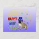 Happy New Year Pug Postcard! A sweet and special card design, to send or give away to family and friends for wishing a Happy New Year.