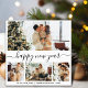Happy New Year Script Black White 4 Photo Collage Holiday Card