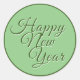 Happy New Year Script Green Classic Round Sticker