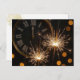 Happy New Year Sparklers On a Midnight Clock Postcard