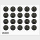 Round stickers with my original design of silver and gold coloured stars, bells and streamers on a black background. Customisable text says "Happy New Year!"