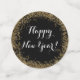 A black Happy New Year table decor confetti with a printed gold glitter design and a script message. Edit using the text editor to make your own message on each piece if you'd like to. Perfect for both a casual and fancy New Year's Eve get together to scatter on tables and surfaces.