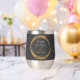 Welcome the New Year with a sleek design featuring "Happy New Year" framed by a gold stain ring on a chic dark grey background. Add a custom date and name to create a personalised and stylish greeting.