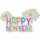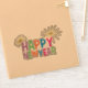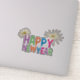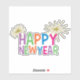 6” x 6” custom-cut vinyl sticker with an image of “Happy New Year” printed in multi-coloured block lettering and two gold fireworks. See matching square sticker, confetti, label and wrapping paper. See the entire New Year Sticker collection in the HOLIDAYS section.