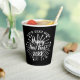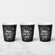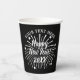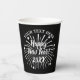 Happy New Year's Eve 2024 custom paper party cups. Fun drinking cups with fireworks design and personalized text. Add your own family name, company, funny quote, year. Black and white 9 ounce size disposable drinkware. Great for office party, home celebration, gathering, meeting, reunion, BBQ etc.