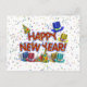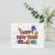Happy New Years Text w/Party Hats & Confetti Holiday Postcard