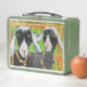 This is a standard metal lunchbox that appears to work just fine. We designed this box ourselves with an uploaded photo and custom text on the front and back. It looks absolutely beautiful except the front of the lunchbox is not centered like it shows in the photo. The print borders don't align with the inset flat part of the box where the preview photo online showed it perfectly centered in there. The back looks nice and centered though.