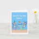 Make a splash with this jaw-some 9th birthday card! A cheerful baby shark takes a playful bite out of a vibrant number "9" perched on a bright ocean birthday cake. Two grinning sharks balance the cake on a surfboard-style stand, all set in a whimsical underwater scene filled with playful bubbles and cute sea creatures like a smiling octopus, clownfish, and sea turtle.