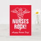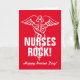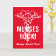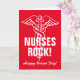 Happy Nurses Day greeting card for nursing week. Red and white card with funny quote and medical caduceus symbol sign. Custom cards for super RN nurse, registered nurse, LPN, nursing school graduate, students, graduation party, caregiver etc. Red or custom background. Also available as enormous oversized card. Fun for birthday party, thank you, graduation etc.