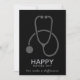Happy Nurses Day flat card, with the text: you make a difference. A personalised message on the back. Designed with a simple grey stethoscope placed on a black background. Elegant minimalist design.