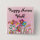 Happy Nurses Week Button, "Happy Nurses Week", pink background with stripes and spring floral design. A perfect way to say "thank you". *All graphic created by nurse artist
