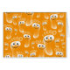 Cute illustration of lots of transparent footprints with happy faces set against a bright orange background. Image available on various gifts and products.