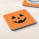 This cute Halloween coaster set features a friendly smiling jack-o-lantern pumpkin face in orange and black colours.