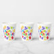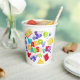 Featuring a cheerful “Happy Passover” greeting, this vibrant cup is decorated with meaningful holiday symbols — traditional matzos, Haggadah, bottles of wine, elegant wine glasses, and playful doodles that reflect the joy and spirit of the celebration. The lively design brings warmth and color to every place setting.