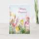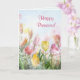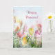 Lovely pastel theme featuring spring tulips and Happy Passover text in pink, aqua and yellow. Customise inside text. Matching envelope and postage available.