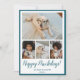 This beautiful photo collage Christmas card with 4 photos, Happy Pawlidays in a modern brush script font, a customisable sentiment, your names and the year would be perfect for sending to your friends and family. Everyone will love getting new photos of you and your dog(s). The fonts are modern and clean in teal. The back is a coordinating teal.