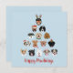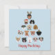 Illustration of many different breeds of dogs. They are dressed in Holiday attire. These dogs head are used to create the shape of a Christmas tree for the Holiday season.