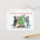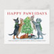 Happy Pawlidays Veterinary Holiday postcard with cute watercolor illustration of festive holiday cats and dogs and Christmas tree. Perfect holiday card to send from a vet's office, animal hospital, cat rescue, dog rescue, or other pet organisation.