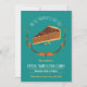 A virtual Thanksgiving invitation with a smiling piece of pecan pie that’s ready for the holiday. All the text is customisable. The background colour has a darker teal tone.