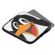 happy penguin. orange beak, smiling face, black, grey orange, red. bird, flightless