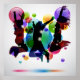 Background with happy people jumping and bubbles