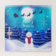 This design features a north pole christmas background, with santa and his reindeer and a snowman