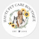 The perfect sticker for your pet care services business. Our Design features our hand-painted watercolor French Bulldog, golden retriever & border collie illustrations with a beautiful sunflower and green wreath framing the dogs. Established and paw print callout with business name and monogram on the sunflower. All illustrations are hand-painted original artwork by Moodthology Papery.