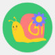 Cute pink colourful snail against a cute grass green background. Colourful girly design. Happy and joyful snail.