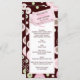 Patterns of polka dots and circles abounds in pink, brown and green on this coordinating menu card for a baby shower. All text is easily customised.
