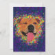 Colourful pop art Happy Pit Bull face, a bit cheeky with a wink, on a background of purple & blue layered brushstrokes. Available on a variety of products at my Zazzle shop, zazzle.com/DoggyStyleStudio.