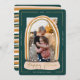 Unique, modern, and magical modern snow globe Christmas photo holiday card to send to your family and friends this holiday season. Design features a unique photo frame with a modern rainbow stripe snow globe frame. "Happy Place" is displayed in an elegant faux gold script within the snow globe base. A simple modern faux gold border frame creates sections to display the year, holiday greeting, and family signature. Simple white stars and falling snow overlay the photo to add a twinkle and a magical look. The reverse side features a complementing modern multi-coloured and gold stripe design. All artwork and illustrations are hand-drawn original artwork by Moodthology Papery.