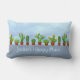 Bring a touch of desert charm to your home decor and show your love for the amazing cacti with this personalized cactus lumbar pillow. The pillow features an illustration of blooming cactus plants in pots against a beautiful blue sky backdrop. The front of the pillow includes a customizable text, with "Jackie's Happy Place" as the sample text, printed in a cute cursive script. This lumbar pillow is perfect for adding a pop of color and personality to any room. It also makes a great gift for friends and family. Add your own personal touch and create a unique and cozy atmosphere in your home with this custom cactus lumbar pillow.