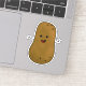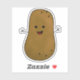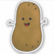 Cute happy brown potato with small black dots for eyes, a big happy open smile and sticks for arms.
