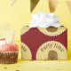 Cute brown cartoon happy potato with a big happy smile on his face. Deep Red background colour and a template to add your own message.